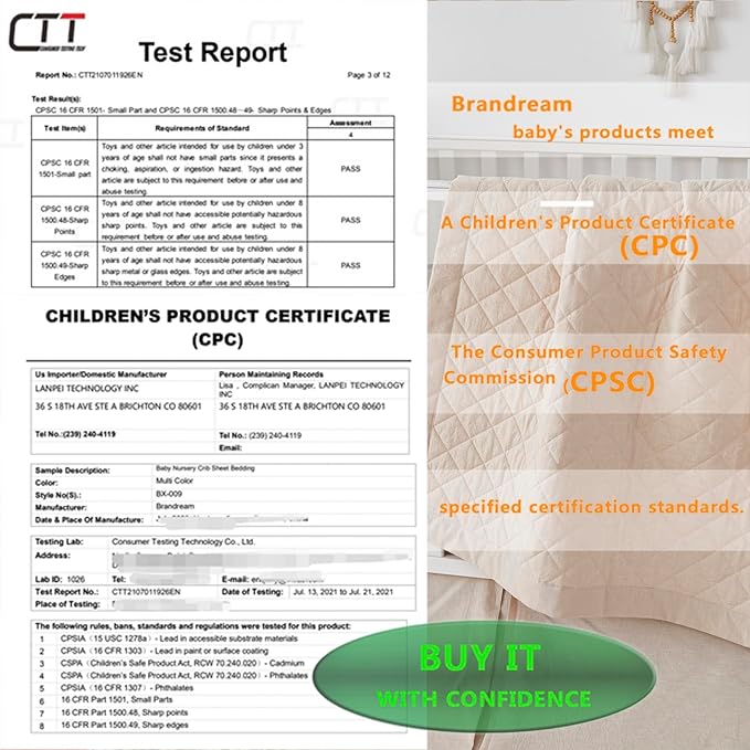- 【WHAT YOU CAN GET】 3-piece crib bedding set inludes baby quilt, crib sheet, beige dust ruffle with 16" drop.