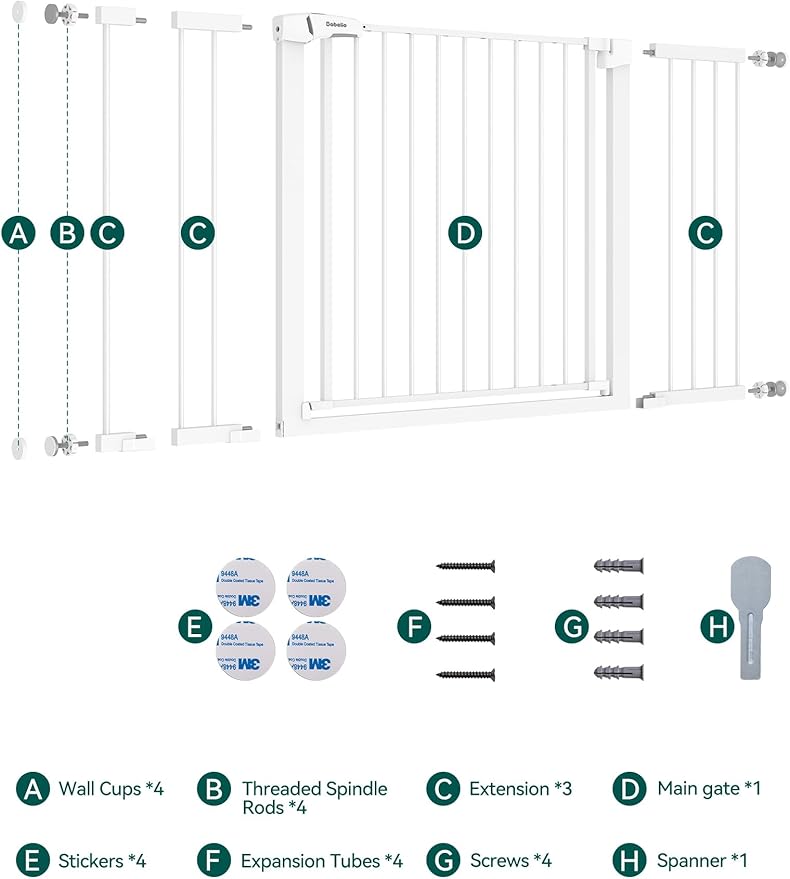 - EXTRA WIDE— The pet gate consists of a gate and 3 extensions. The maximum width is 57 Inch, while the minimum is 36 Inch, ideal for wide openings as well as stairs, hallways and doorways to protect children and pets.The main gate is widened to 29.5 inches, making it very convenient to pass through.