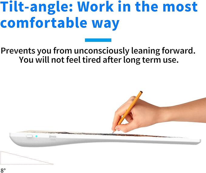 - 【 New Design Tilt Angle and Stable Magnets 】 The backside of light box tracer is of 8 degree tilt which is ergonomics and make you feel soft during long-time painting. 4 pcs magnets are provided for you to hold the paper on the surface of light box and keep it stable so that the LED lightboard for tracing is a perfect gift for kids women and artist friend.