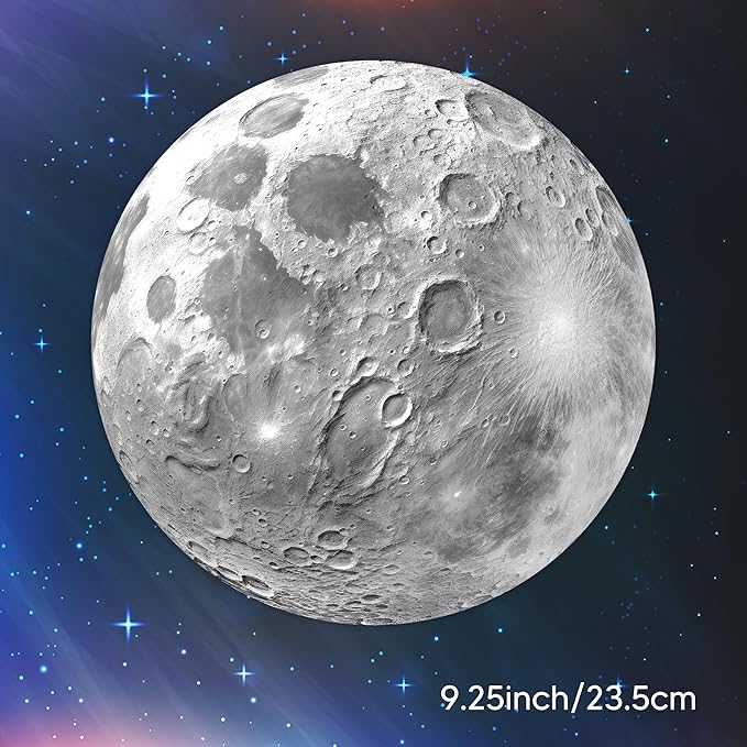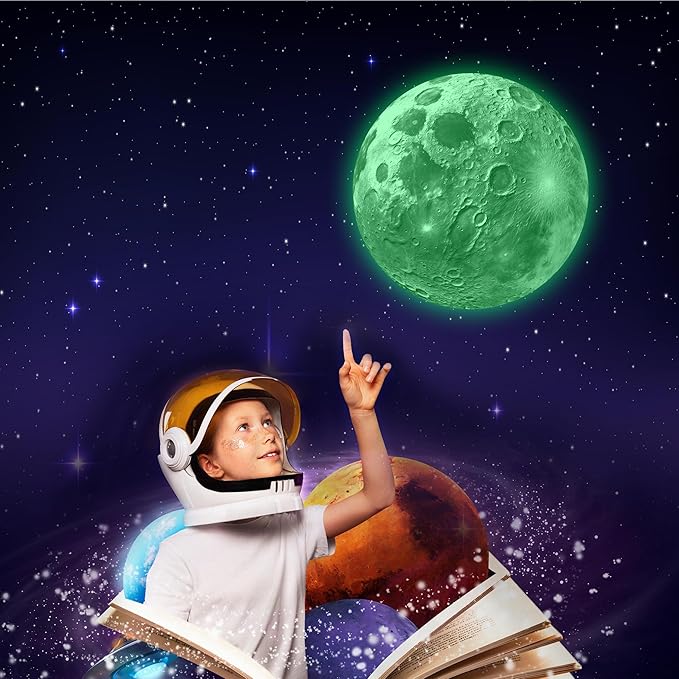 - Robmoda Glow in The Dark Planet - One piece of moon sticker made up of non-toxic, eco-friendly, waterproof, pressure resistant, shock resistant& durable fluorescent PVC. It comes in 23.5 cm (9.25β).