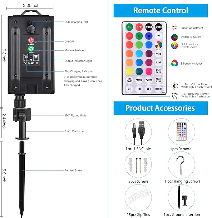 - Special Feature : ★33FT ★100 LEDs ★Solar Powered ★USB Rechargeable ★16 Vibrant Colors ★2 multi-color steady on ★Remote Controlled ★IP68 Waterproof ★ 8 Light Modes ★ Timer ★Twinkling ★Speed Adjustable ★ Portable ★33FT ★100 LEDs ★Solar Powered ★USB Rechargeable ★16 Vibrant Colors ★2 multi-color steady on ★Remote Controll… See more