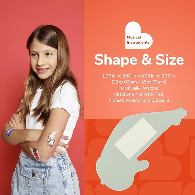 - EASY TO CARRY AND USE: These cute and colorful Musical Instruments children's bandages are easy to take with you for travel, and easy to store in a home first aid kit; these healing bandages are perfect for school, summer camp, camping trips, weekend getaways and more