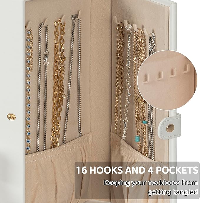- 【6 LAYERS with 5 Versatile Pull Out Drawers & 2 Hidden Side Cabinets】 The two deeper bottoms of the 5 removable drawers has only one compartment; Drawer 1 has 12 equal size slots; Drawer 2 has 8 equal size slots; Drawer 3 has 4 equal size slots. The 2 Swing out Cabinets including 6 hooks and 2 pockets, help to keep your necklaces from getting tangled