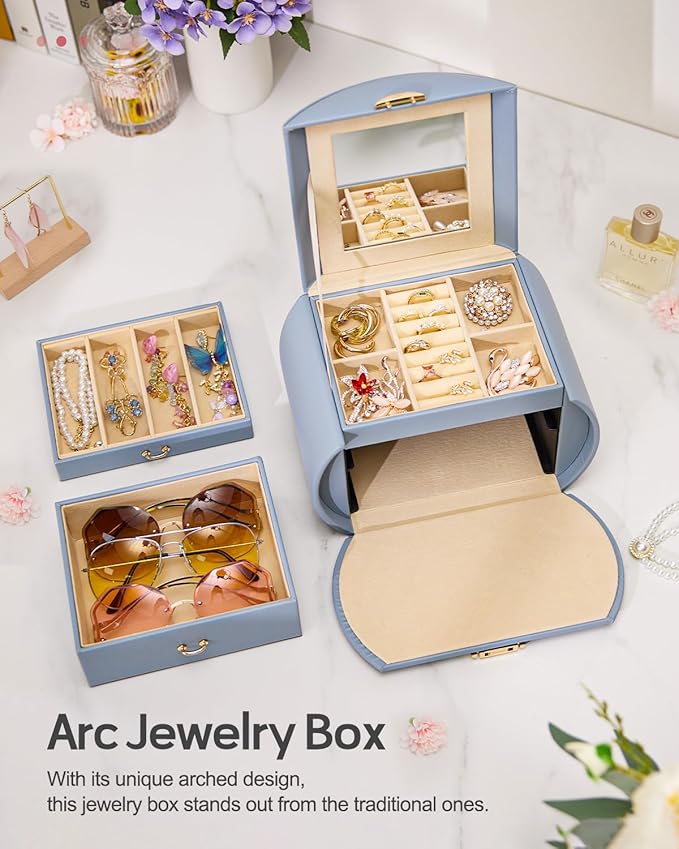 - AMPLE STORAGE SPACE: Suitable for girls or women to organize her treasure, such as necklaces, chains, bracelets, rings, earrings, cufflinks, hairpins, sunglasses and other jewelries.