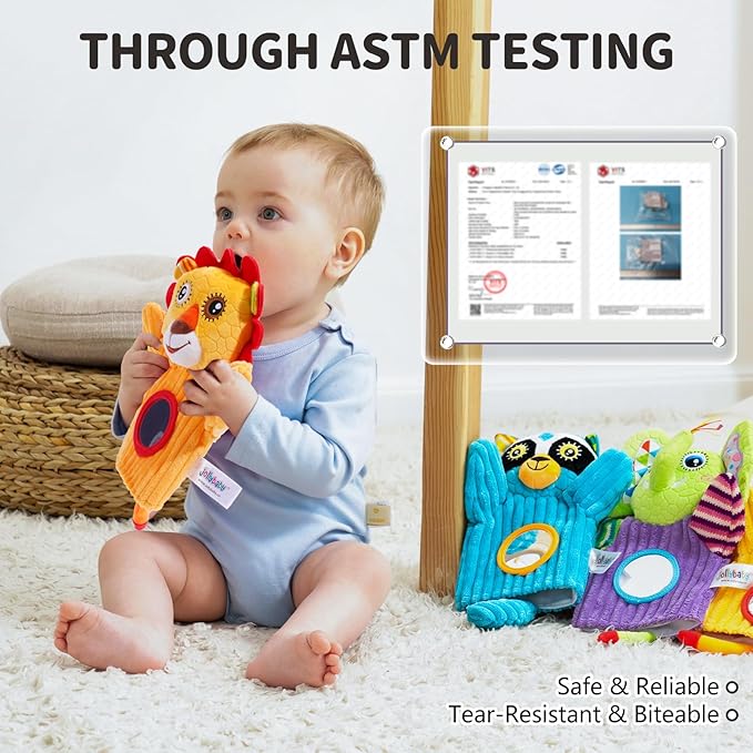 - SENSORY HAND PUPPETS: Jollybaby plush stuffed animal hand puppets toys are equipped with built-in bells and a funhouse mirror. The bells produce a gentle jingling sound that will engage your baby's hearing. The distorting mirror adds an element of surprise and self-discovery, fostering your kid¡¯s sense of curiosity and self-exploration. Our sensory doll toys are made with skin-friendly fabrics materials, helps to enhance your baby's sense of touch and promotes sensory development.