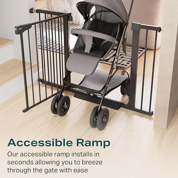 - Large & wide: With a height of 30.5 inches and an adjustable width of 29.7-46 inches, this black gate fits most doorways. Our large walk-through gate makes it easier to move around while holding your baby. A great choice for new parents