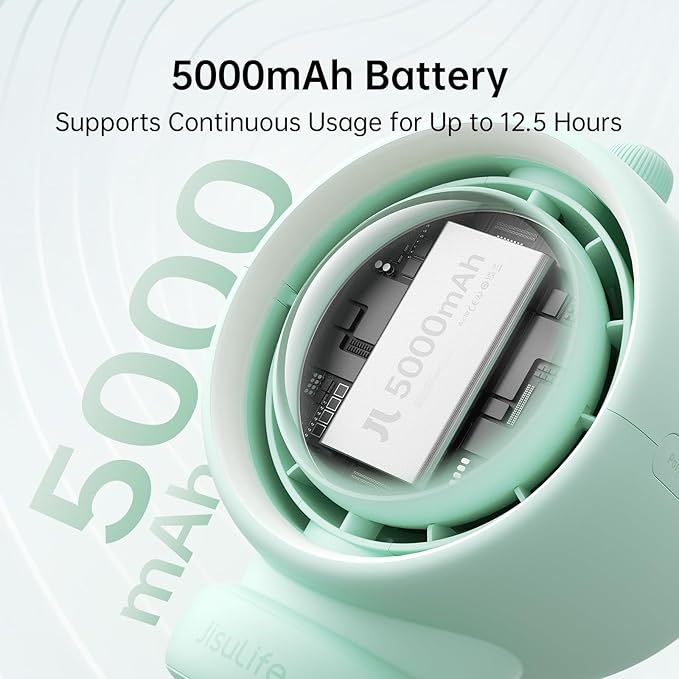 JISULIFE Stroller Fan Baby Large, Safe Bladeless for Crib, Desk, Portable Battery Rechargeable Cooling Fan with Air Turbo Tech, LED Display, Night Light, Food-Grade Gift for Mom/Dad/Friend - Green