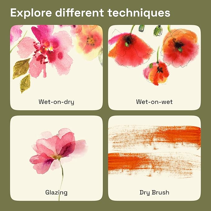 - Versatile Metallic Application Techniques: Our metallic watercolors are designed for flexible use, allowing for smooth flat washes and easy layering. The metallic paints blend seamlessly and do not leave hard edges when dry, enabling a range of professional techniques.