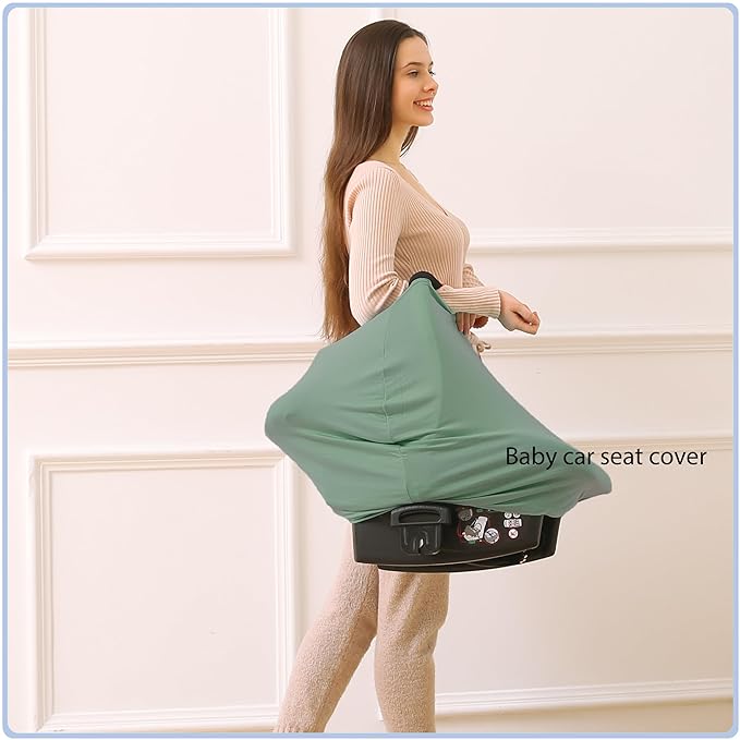 Car Seat Covers Baby - Multi-use Cover Carseat Canopy, Breathable Breastfeeding Cover, Car Seat Covers for Bbies, Boys & Girls Shower Gifts (Light Green)
