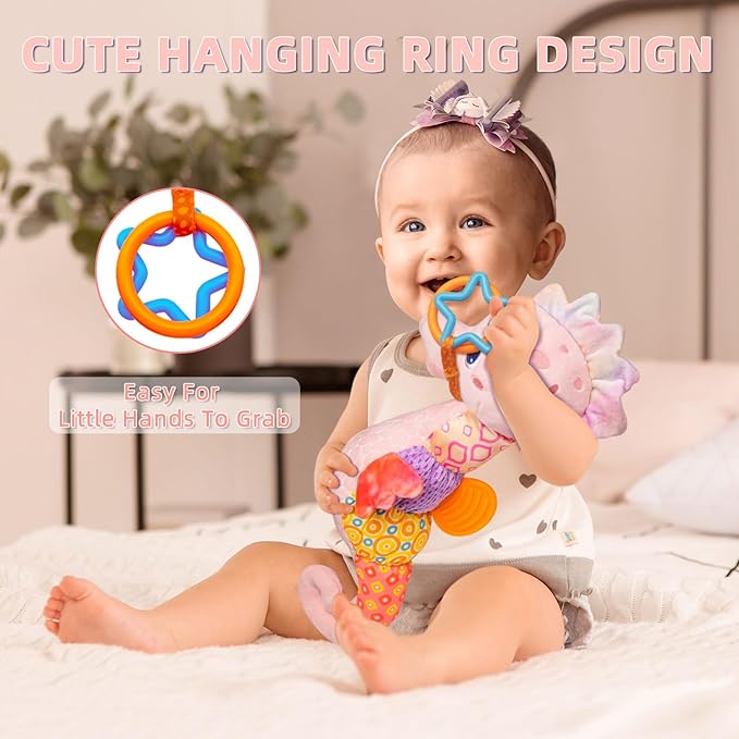 - 【Tactile Sensory Development】The baby seahorse toys is a must-have for tummy time and sensory exploration.The inclusion of crinkle sound paper and graphic hanging rings, which designed for easy grasping by your baby's small hands.From enhancing sensory awareness to fostering fine motor skills, encourage babies exploratory play during tummy time.