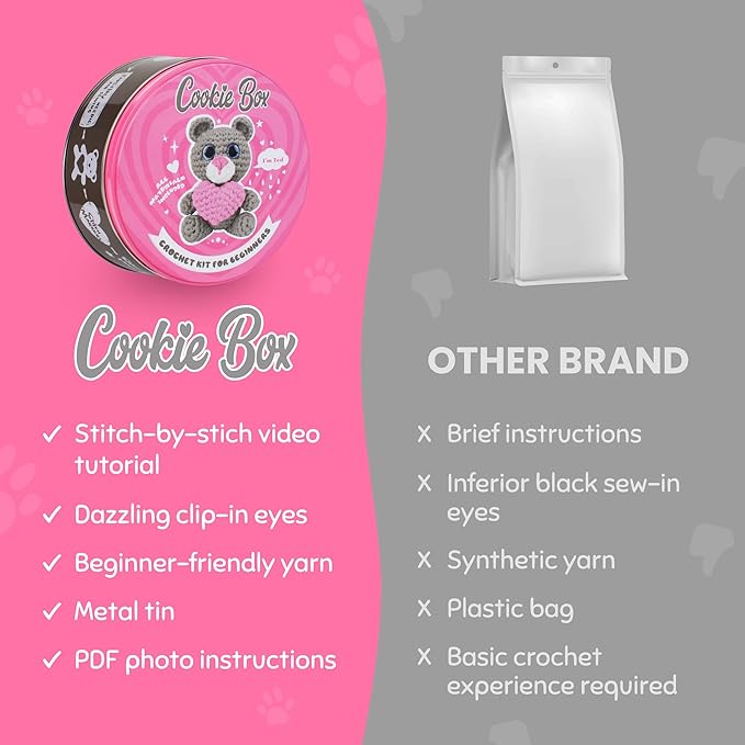 - 💖 Our Promise to You: The entire Cookie Box team is committed to making crochet truly beginner-friendly, frustration-free, and rewarding. Every kit is designed for the best learning experience, combining high-quality materials, clear guidance, and real support. Thank you for being part of the Cookie Box crochet community!