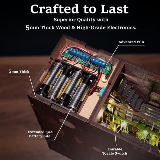- 【Enhanced Durability and Longevity】 Crafted with a robust 5mm wood base and equipped with high-performance electronics for reliable functionality. Designed to accommodate 4 AA batteries for extended usage and enjoyment — perfect for prolonged display (note: batteries not included).