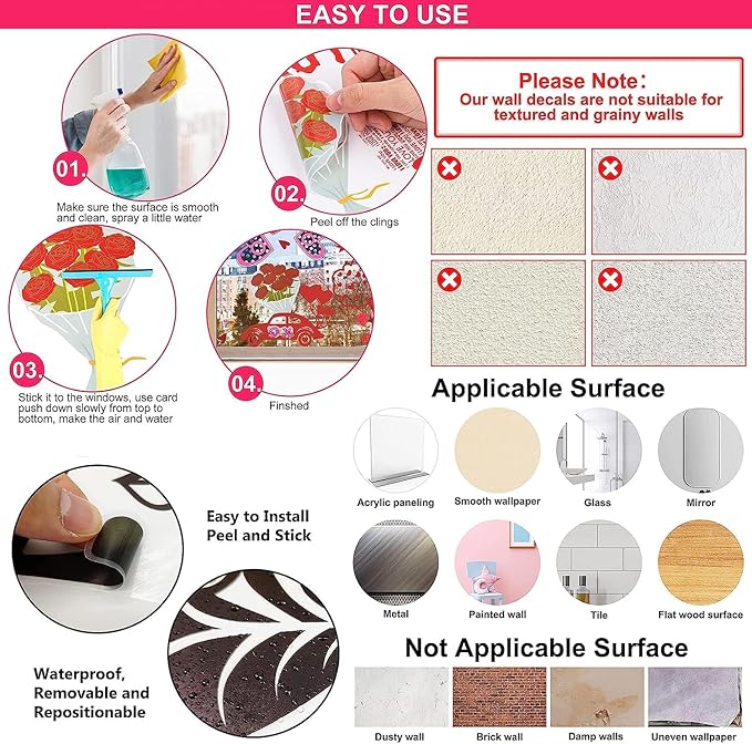 - đ»ăEasy to useăThis decal is convenient to use.Just peel them off carefully and stick them on the smooth,clean,dry and dust-free surfaces with your hands.