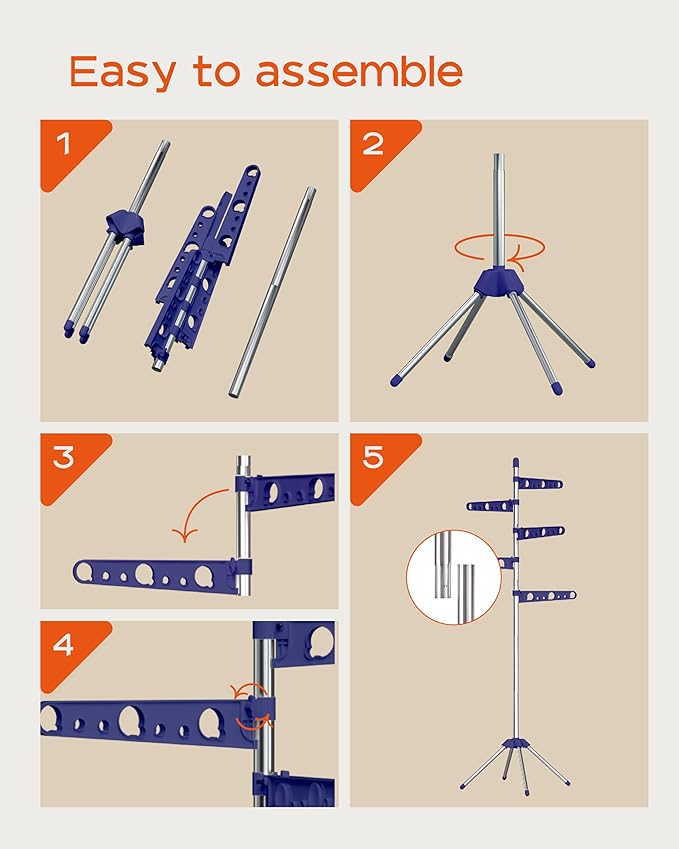- [Easy to assemble and carry] This drying rack can be installed in just four steps and can be completed within three minutes. The easy to disassemble and assemble design makes it possible for you to carry it with you when you need to dry your clothes on a camping trip.