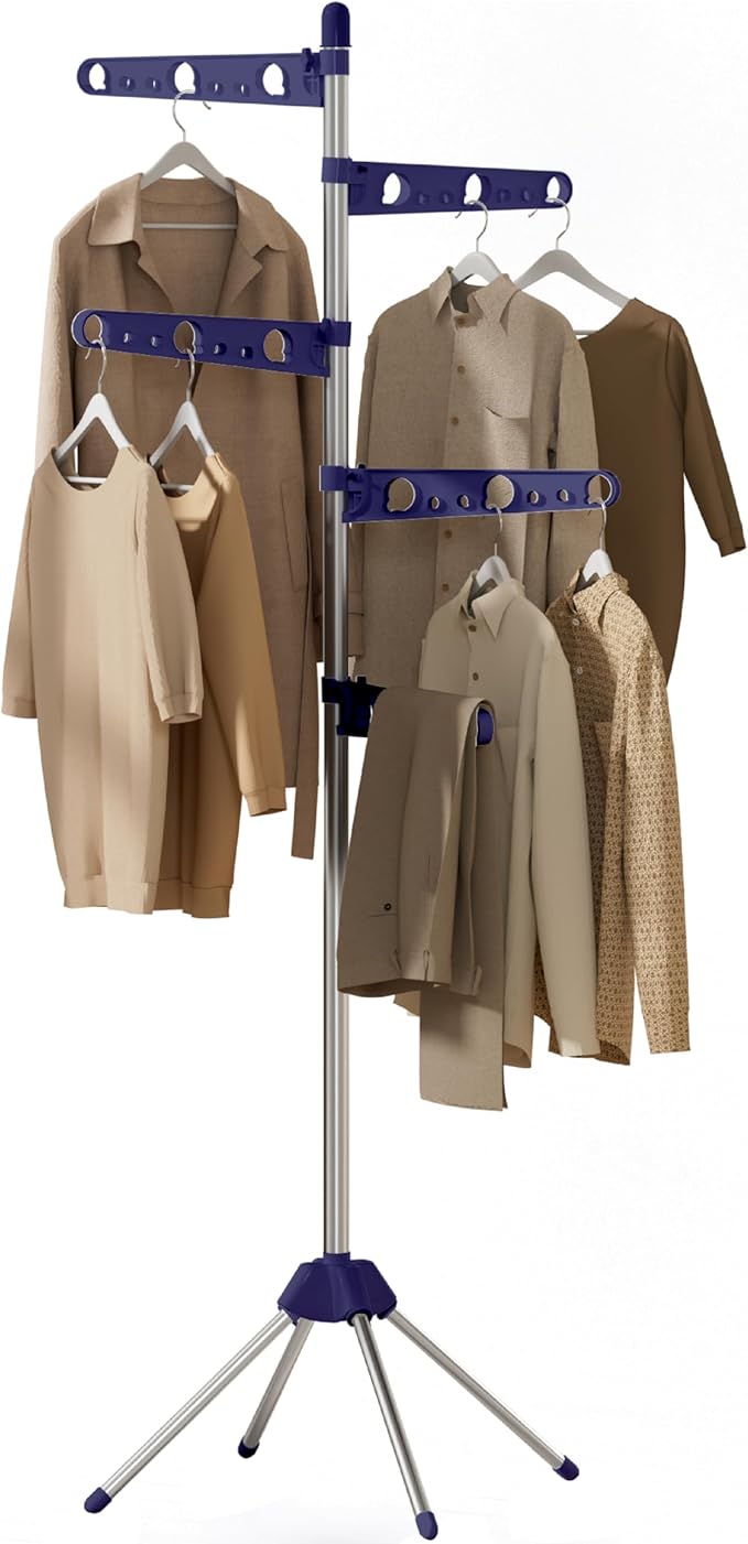 - [Height-adjustable and Rotatable Clothes Rack] The drying rack has 5 hanging rods, each of which is height-adjustable, so you can adjust it freely according to the length of your clothes. Equipped with a 360-degree swivel design, this laundry drying rack provides you with the convenience of hanging and accessing your clothes.
