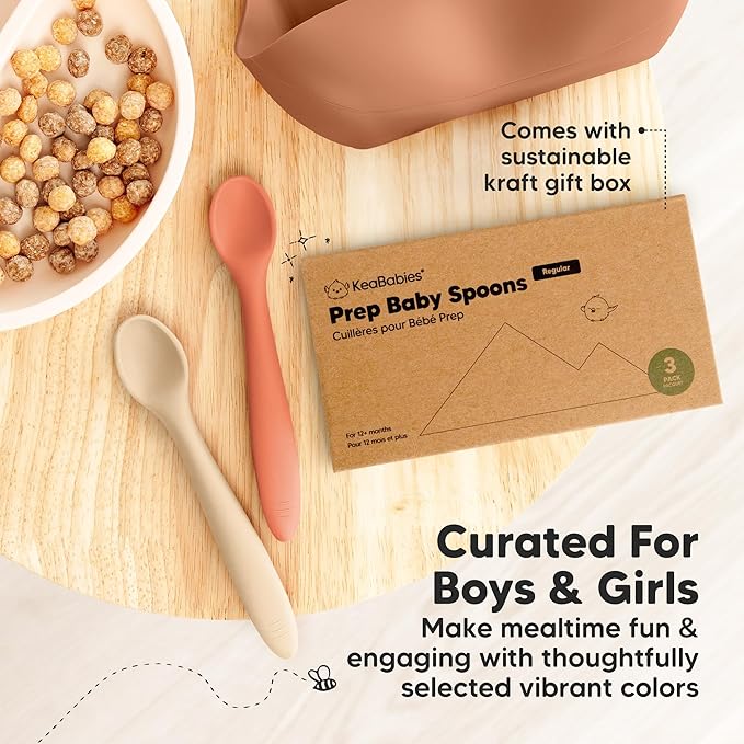 - Safer Silicone - KeaBabies 3-Pack Prep Silicone Baby Spoons Set is made from 100% food-grade, BPA-free silicone. With a topple-free handle and comfort sized scoop, these toddler spoons help BLW toddlers build confidence as they learn self-feeding.