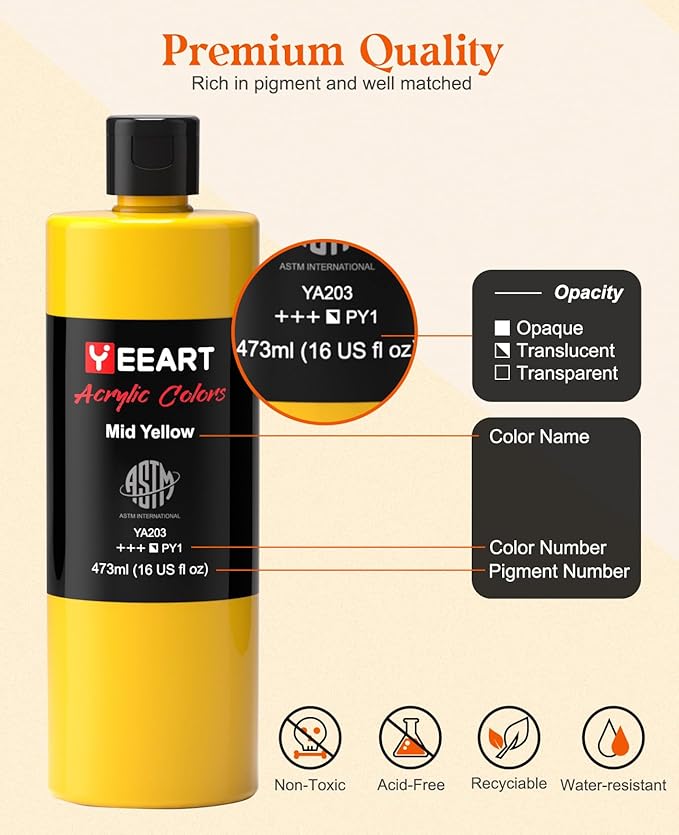 - RICH PIGMENTS: Premium acrylic paints bring bright colors, thick and creamy texture, as well as incredible consistency to painters.The thick texture and high pigments offer strong coverage and excellent ductility, They mix and blend well to come up with more colors, giving you a brilliant texture for your art. ideal for professional artists, beginers, painting lovers and kids