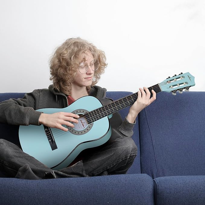 - TOP QUALITY MATERIALS: Our 36 inch acoustic classical guitar top, back, and sides are made of Laminated basswood; the Maple Rosewood fingerboard and bridge provide a comfortable playing feel; The three nylon strings and three steel strings design will make it your favorite musical instrument