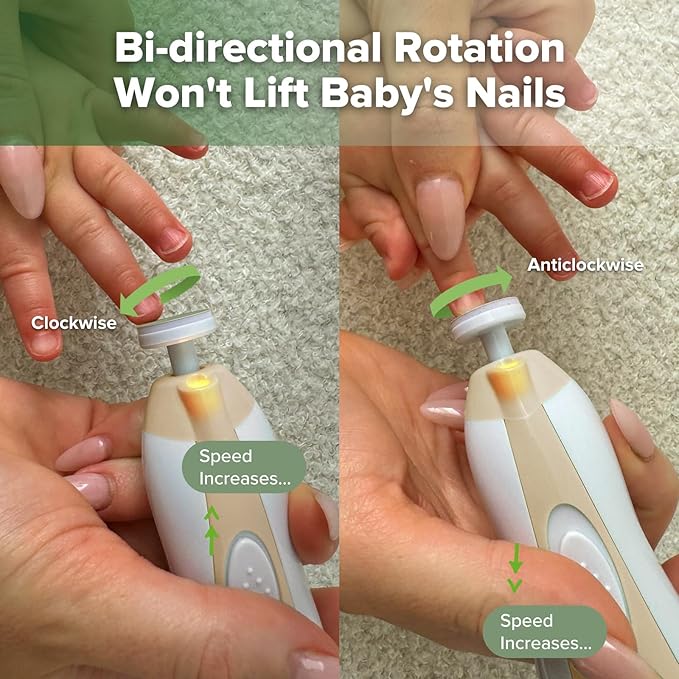 - SAFE & GENTLE: Our electric nail trimmer, equipped with a pressure-activated safety system, is gentle on your baby's fingers, preventing injuries and ensuring parents' peace of mind.