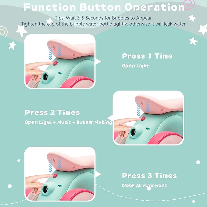 - Ensuring Safety First: Our electric baby balance bike with bubble maker ride on toy not only promotes fitness and balance in young children but also encourages babies to utilize their legs, thereby strengthening leg muscles and establishing healthy exercise habits from an early age. It fosters balance, coordination, self-confidence, and independence. Featuring a lower floor-to-seat height, even the smallest tots can enjoy a smooth and secure ride-on experience.