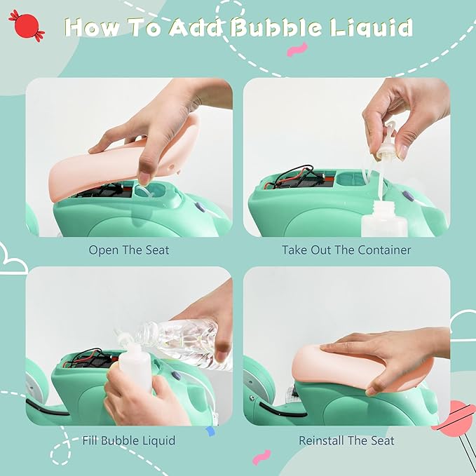- Comfortable children's balanced motorcycle with remote control and bubble machine: Our riding toy features anti slip handles designed specifically for small hands, seats that conform to human body structure, making it more comfortable for children to sit on. The four wheels can ride smoothly on various surfaces, making it perfect for indoor and outdoor activities.