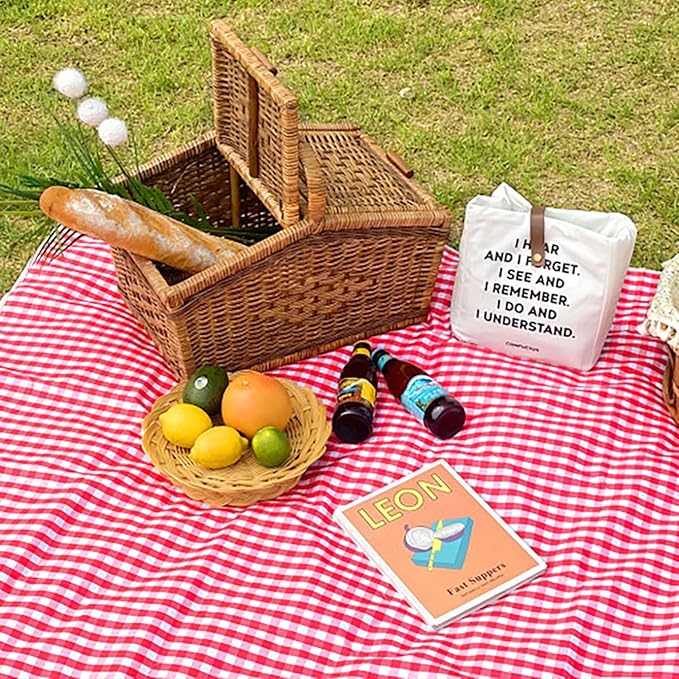Cute Gingham Picnic Blanket, Waterproof Foldable, in Large 80x60in and Extra Large 80x80in, Portable Compact Beach Blanket, Oversized XL Outdoor Mat (Red, Large)
