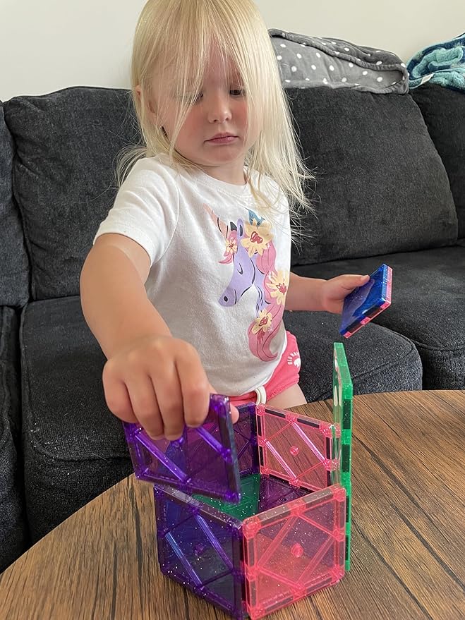 CreateOn Crayola Magnetic Tiles, Building Set for Kids, Magnetic Toys for Kids, Travel Toys, Classroom Sensory Toy Blocks, STEM & Montessori Tools for Boys & Girls Ages 3+, 14-Piece Set (Glitter)