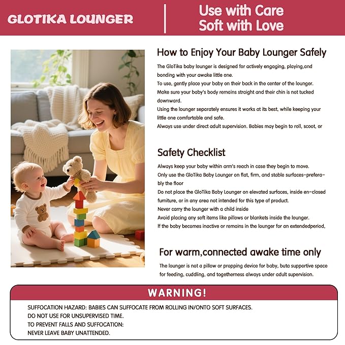 - Safe and Comfortable Design: Our baby lounger features a wrap-around design that ensures your baby's safety while providing comfort with soft, high-quality materials.
