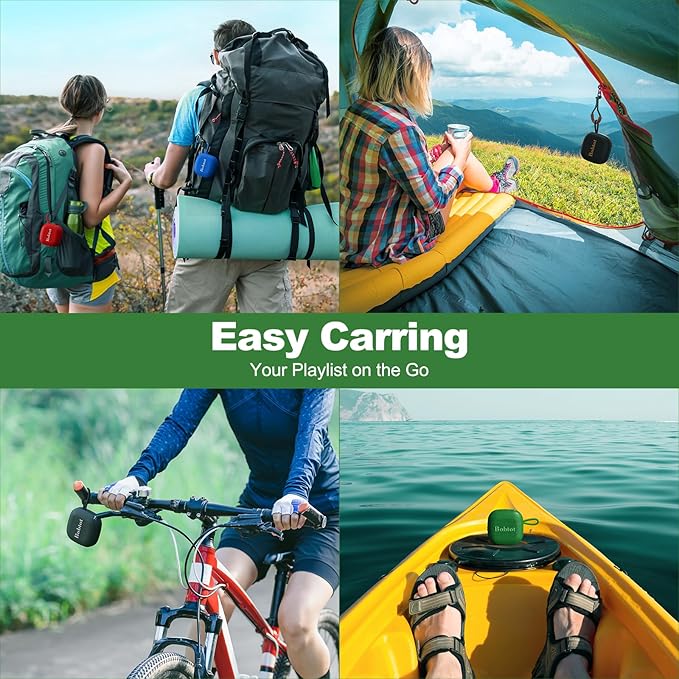Bobtot Portable Bluetooth Speakers Wireless - IPX7 Waterproof Mini Shower Speaker with 16 Hours Playtime, Loud Stereo Sound, Rich Bass, TWS, Built-in Mic, Small Size for Travel Sport, Green