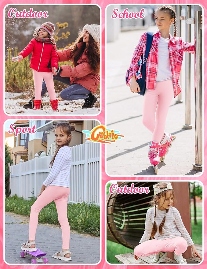 - 【Stays in Place】 Our pull-on leggings for kids have high shape retention and a soft, unrestricted elastic waistband to keep them in place. These pink pants for girls feature flatlock seams that provide comfort and create a classic look. Even with frequent and heavy wear, these girls' leggings maintain their accurate size.