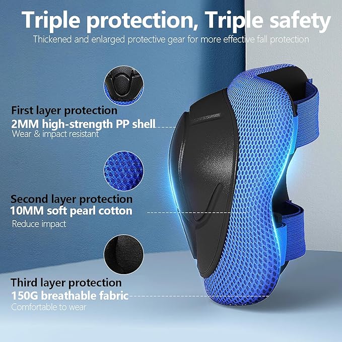 - đšăVENTED & COMFORTABLEă19 air vent let air go through the kids helmet,Toddler skateboard helmet set can keep their heads cool even. Kids scooterđ´ helmet internal protective padding is soft, detachable and washable.Kids adjustable helmet with soft and comfortable chin pad, no more worries about that the straps may scratch child's sensitive skin.