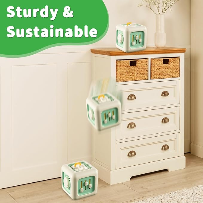 - [Well Made with Quality Care] Our sensory cube is crafted from non-toxic, BPA-free materials with sanded edges to ensure your child's safety during hours of engaging play. Please note: Keep it clean by wiping with mild detergent and a damp cloth, and avoid prolonged exposure to direct sunlight
