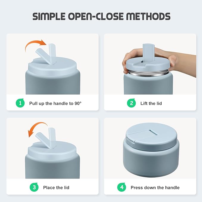- Use Tips and Notes:In order to keep food hot or cold for a longer time, we recommend preheating/precooling with hot water/ice water for 5~10 minutes before putting food or soup into the food jar, and then put the food in. Note that when you disassemble the cover for cleaning and then reinstall it, be sure to lift the top of the cover before installing it. Otherwise, it will not be firm!!!