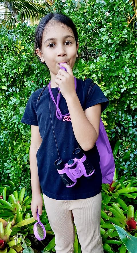 - 🔍LARGE MAGNIFYING GLASS - 3 x magnification for examining plants, insects and rocks. Wonderfully fun for camping trips and outdoor or indoor investigations. SAFE Non Choking pealess FOX WHISTLE - great for hiking, scouting, sports, games and safety locator. Clip on thick lanyard to be worn around the neck for quick access for signaling location or emergency use.