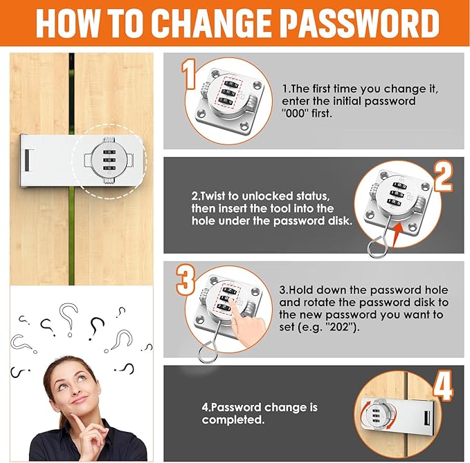 - Password Unlock: The three-digit combination lock is designed to be both secure and convenient. With up to 1000 combinations of passwords, you can set your own exclusive password according to your own preferences or habits, no need to use keys to unlock the door, eliminating the worry of lost keys and providing a certain level of security for your personal belongings