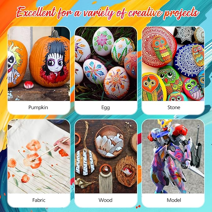- 【Excellent Arts & Diy Craft Supplies】Caliart water color set are versatile in canvas art, painting, scrapbooking, Easter, Christmas, Halloween decorations and more. Suitable for most surfaces, including canvas, wood, rocks, painting pumpkins, stretched canvas, fabrics, stone, metal, plastic, ceramics, decorative wall, blackboard, paper, plaster.