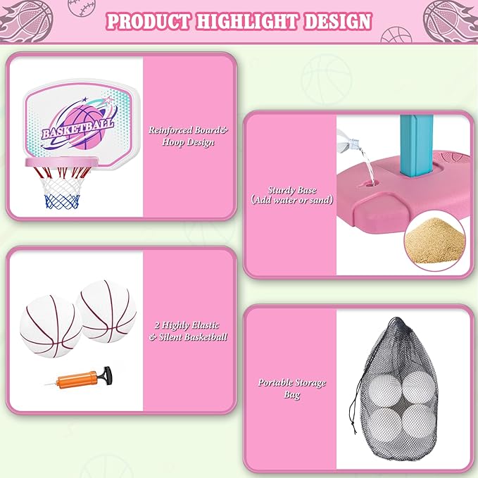 - 【GROW WITH YOUR GIRLS】This pink versatile basketball hoop & tee ball set is designed for girls, aiming to cultivate their love of sports from a young age. It adopts a simple snap-on design, which can be freely adjusted according to the height change of baby girls, let the basketball baseball toy grow with your child. Baseball stand height range: 31.5 - 42 inches, Basketball stand height range: 24.3 - 35.3 inches