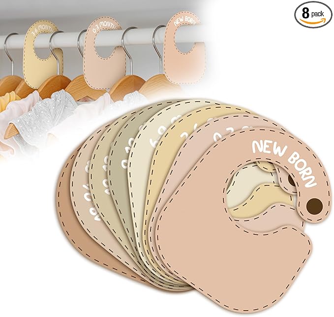 - 【Easily Divide Baby Clothes】 With clear, easy-to-read labels for different sizes and types of clothing, these 8 pack of baby closet dividers make it simple to organize and locate your baby's outfits at a glance. The baby clothes hanger dividers enhanced clarity. Each baby dividers for closet includes dividers for baby age ranges and clothing sizes, from newborn to toddler, ensuring that as your baby grows, their closet still remains neat and orderly.