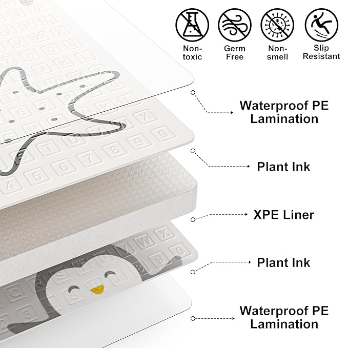 - Easy to Clean and Waterproof: Our tummy time mat has a water-resistant surface, easy to clean, low maintenance cost, simply wipe with a damp towel to remove spills, stains, and dirt, providing a sanitary play space for your children