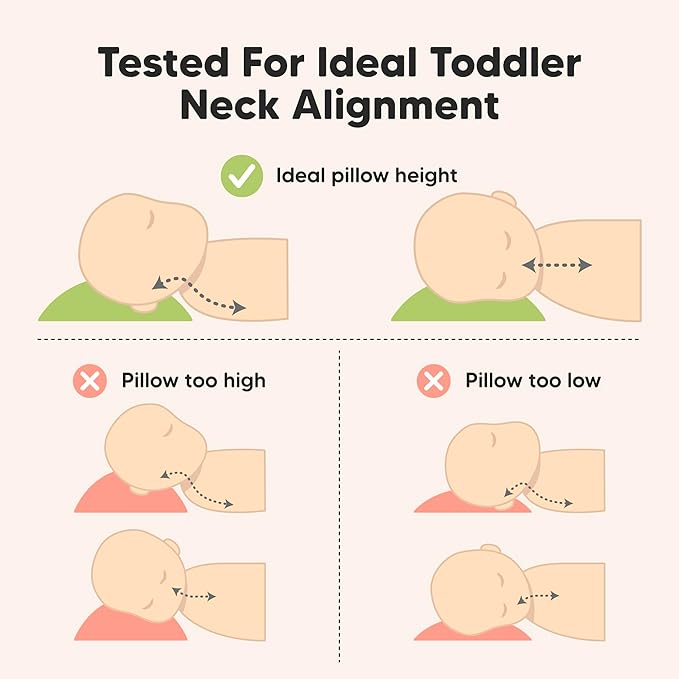 - Ergonomically Designed β The KeaBabies Jumbo Toddler Pillow offers ergonomic support for healthy spinal alignment and all-night comfort. Note: Vacuum-sealed and may appear flat. Simply massage or cold wash and tumble dry low to restore its fluffiness after opening from package.