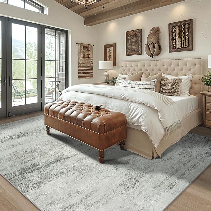Area Rug 9x12 Washable Rugs: Abstract Large Living Room Rugs with Non-Slip Backing, Thin Carpet for Dining Room Table Bedroom Nursery Indoor Home Office-Gray