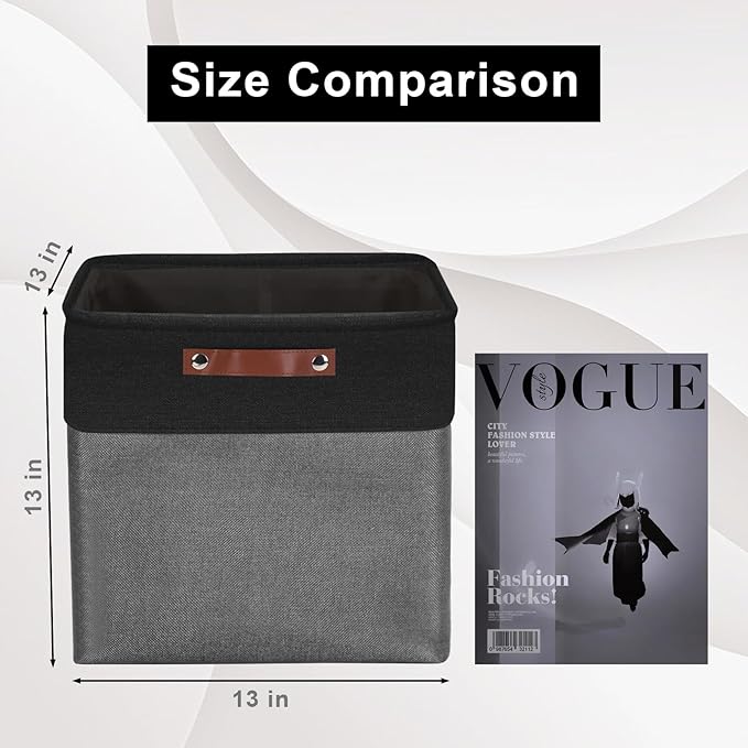 13x13 Cube Storage Bins, Collapsible Fabric Storage Box, 4 Pack Closet Baskets with Handles for Organizing, Shelf, Toys, Clothes, Home, Office, Nursery (Grey&Black)