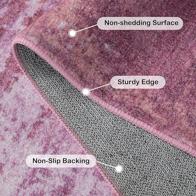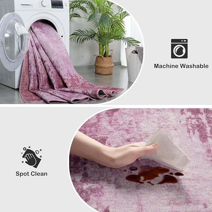 Kelarea Living Room Rug, 6x9 Rug Modern Abstract Washable Rugs Pink Faux Wool Vintage Carpet, Non Slip Rugs for Bedroom, Dining Room, College Dorm, Kids Playroom, Home Office