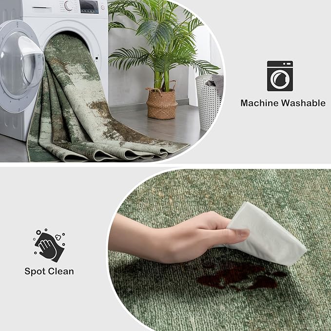 Kelarea Living Room Rug, 6x9 Rug Modern Abstract Washable Rugs Green Faux Wool Vintage Carpets, Non Slip Rugs for Bedroom, Dining Room, College Dorm, Kids Playroom, Home Office