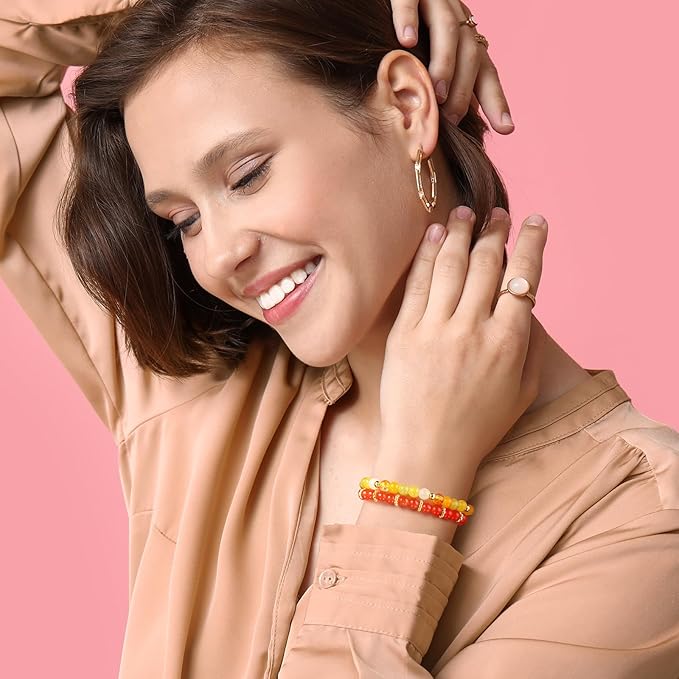 - Complete Crafting Kit: This Beads for Bracelets kit includes everything you need to start making bracelets, featuring 2 rolls of crystal elastic line for easy stringing and 180 spacer beads to enhance your designs. The box is designed with separate compartments for different colors, making it easy to organize your supplies.