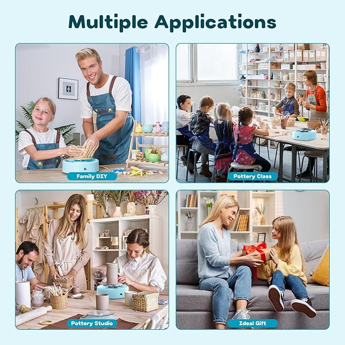 - Anti-Slip Base for Enhanced Control: The anti-slip foot pads and heavy-duty motor keep the kids pottery wheel securely in place while you work. This pottery wheel kit provides a steady and controlled environment for beginners, kids, or anyone who is learning to make pottery