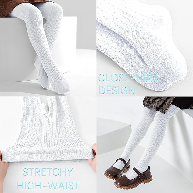 - MULTIPLE OCCASIONS: Available in 2 pack, suitable for dailywear and special occasions, such as birthday, Easter, Christmas, baptisms, holidays. Cable knit design and colorful tights easliy matches with different shoes and kids' outfits