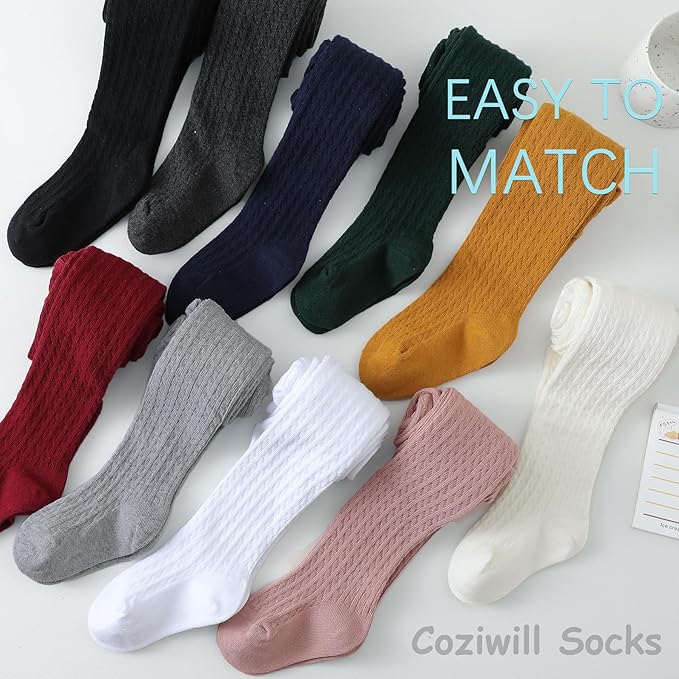 - MULTIPLE OCCASIONS: Available in 2 pack, suitable for dailywear and special occasions, such as birthday, Easter, Christmas, baptisms, holidays. Cable knit design and colorful tights easliy matches with different shoes and kids' outfits
