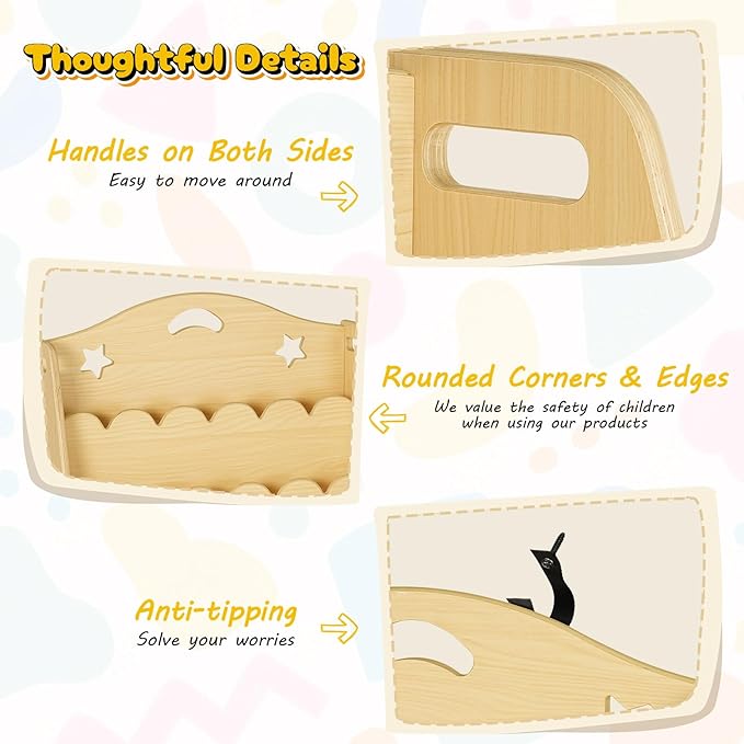 - MULTI SCENARIO USE:Not only a perfect furniture in the kid's room, bedroom, and living room, but this bookshelf can also be used for nursery, classroom, playroom, daycare to add additional storage and display space. It's a gift for children kids to grow up with, a ideal gift choice for birthdays, children's day, and christmas day