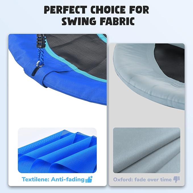 - 【Weather-Resistant Disc Swing】Crafted with premium textilene, Hapfan kids round swing is more durable than traditional Oxford fabric swings. UV-resistant, waterproof, and wear-proof, it withstands outdoor conditions for years. The galvanized swing tubes ensure long-lasting performance, making it the ultimate choice for outdoor fun